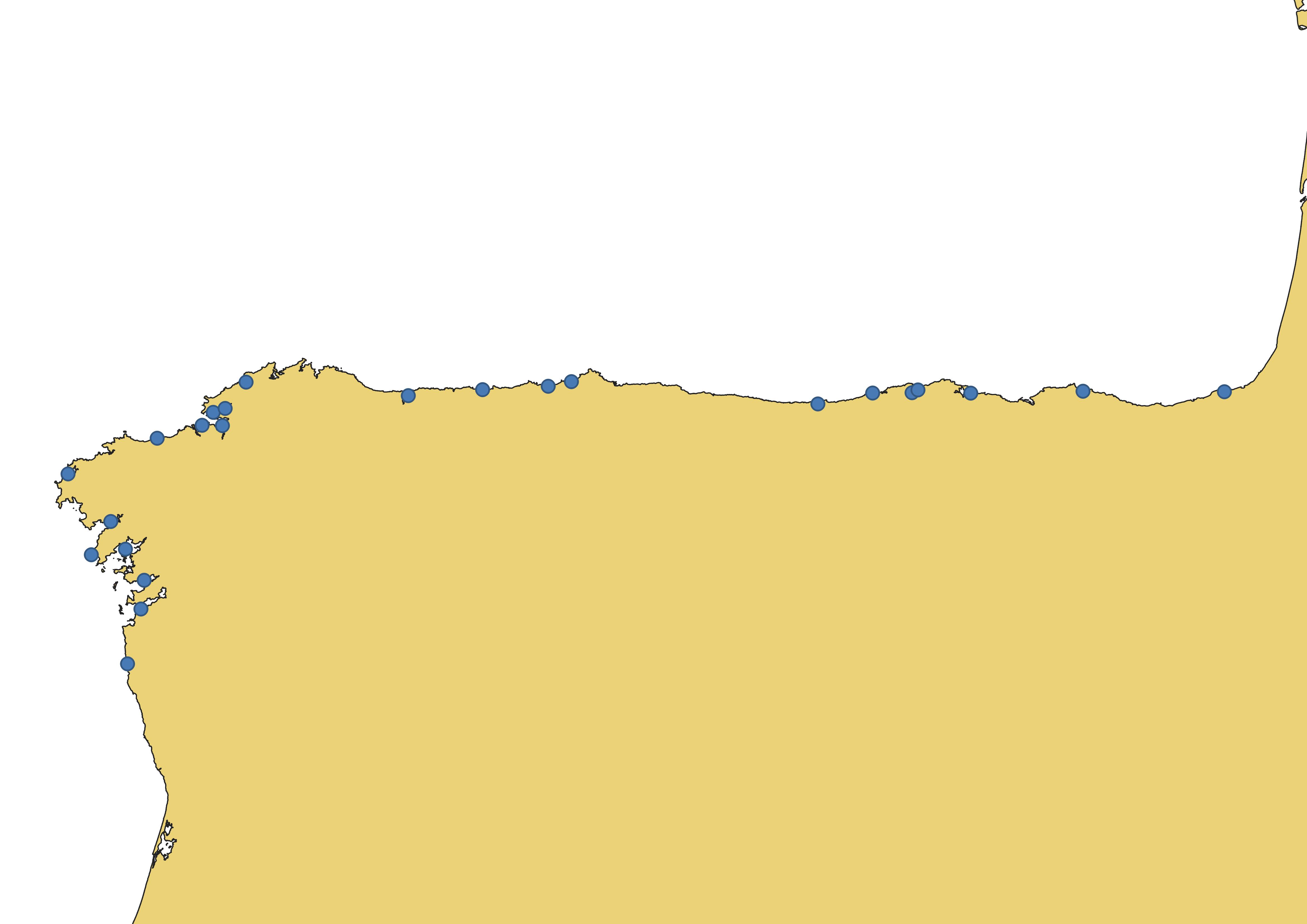 La información contenida en este conjunto de datos está referida a la campaña ESMAROS 2024 Norte. Se trata de la representación de la distribución espacial de los puntos de muestreo del mejillón/ostra que se llevaron a cabo entre los meses de octubre de 2024 y febrero de 2025 para la determinación de metales pesados, compuestos organoclorados, hidrocarburos aromáticos policíclicos y éteres de bifenilos polibromados para los estudios de distribución temporal. Parte de estas muestras también se usarán para la cuantificación de microplásticos y para el estudio de efectos biológicos. La zona que comprenden los datos proporcionados abarca la Demarcación Marina Noratlántica de EEMM, concretamente desde La Guardia (Pontevedra) hasta Hondarribia (País Vasco). Se trata de un conjunto de datos compuesto por elementos puntuales, donde cada elemento representa el punto de toma de muestra del mejillón/ostra. Cada objeto tiene asociada una serie de variables alfanuméricas como son el nombre del punto de muestreo, el nombre de la campaña, la fecha y la georreferenciación, según el protocolo SIG del proyecto de Estrategias Marinas de España (ESMARES). La serie temporal de muestreos para el estudio de la contaminación del mejillón en la demarcación Noratlántica comenzó en los años 90. La información geográfica recogida se almacena en una base de datos espaciales. Estos trabajos se han financiado gracias al Proyecto “Asesoramiento Científico Técnico para la Protección del Medio Marino: Evaluación y Seguimiento de las Estrategias Marinas, seguimiento de los espacios marinos protegidos de competencia estatal (2018-2024)”. Las Estrategias Marinas son el instrumento de planificación del medio marino creado al amparo de la Directiva 2008/56/CE (modificada mediante la Directiva UE 2017/845) por la que se establece un marco de acción comunitaria para la política del medio marino (Directiva Marco sobre la Estrategia Marina), y tienen como principal objetivo, la consecución del Buen Estado Ambiental (BEA) de nuestros mares. Los 11 descriptores del Buen Estado Ambiental constituyen la base en que se sustenta la descripción y la determinación del buen estado ambiental del medio marino. Son establecidos por la Directiva en su anexo I. Las áreas marinas de evaluación se localizan dentro de las Demarcaciones Marinas definidas en el marco de las Estrategias Marinas de España, siendo estas Demarcaciones Marinas las unidades utilizadas para la notificación a la Comisión Europea (Marine reporting units - MRU).